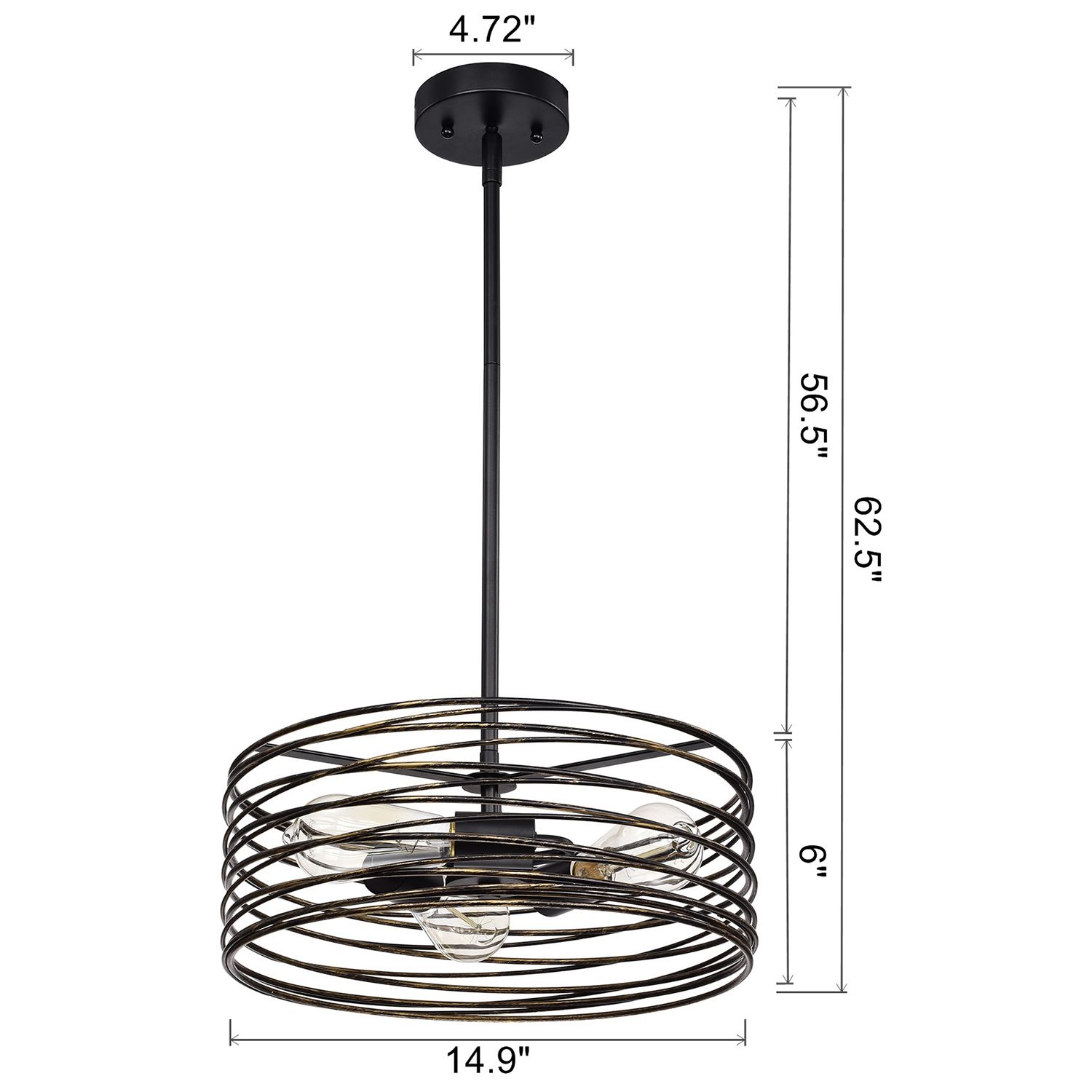 3 Light pendant in black and gold accent including 4*12+1*6 stems, 14.9*6-62.5"