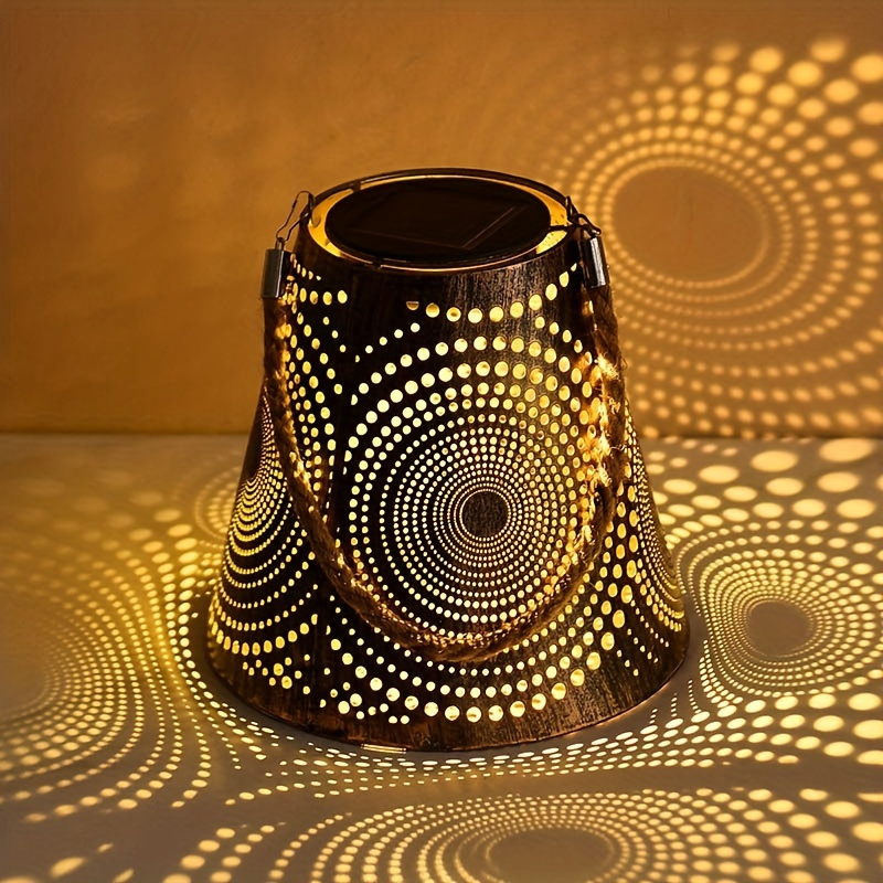 Home > 1pc, New Hanging Wrought Iron Outdoor Solar Light (5.7"x5.7"), Hand-held Projector Lamp, Outdoor Waterproof Garden Hanging