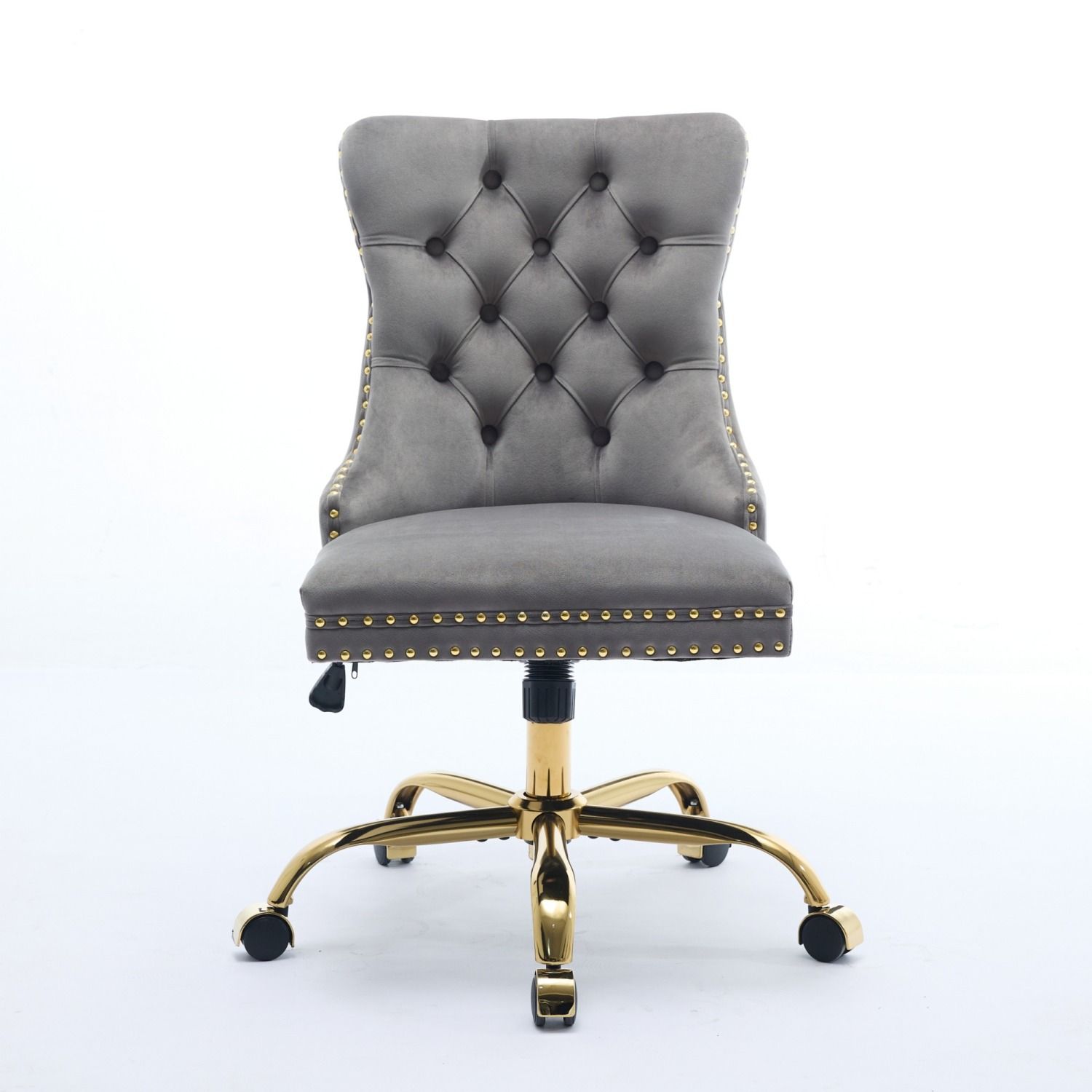 A&A Furniture Office Chair,Modern Velvet Upholstered Tufted Button Home Office Chair with Golden Metal Base