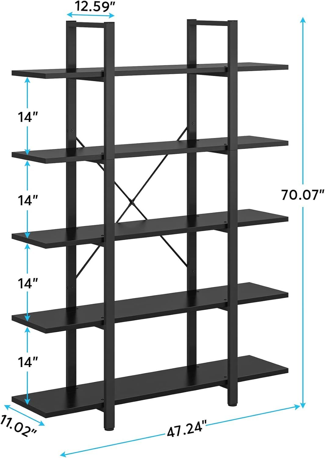 EXTRA LARGE SPACE for SHOWCASE: 72' high x 12' widex 47' long, and the compartments height is about 14.2' , 5 spacious shelves bookcase with 47 inches length made it an ideal organization for all of your storage and display needs.