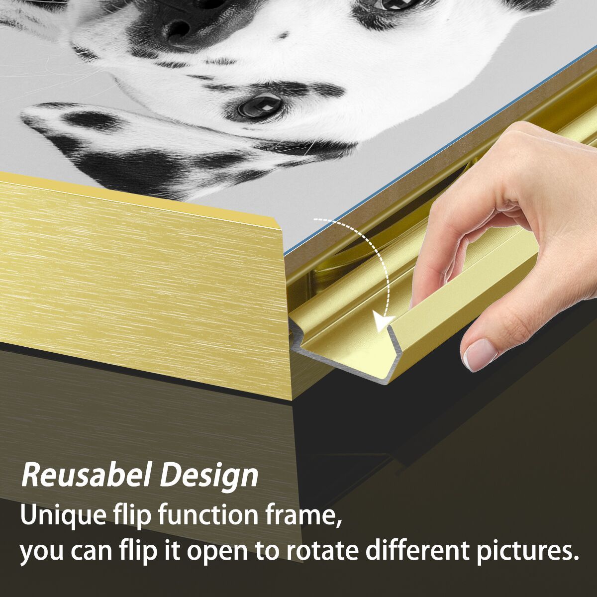 [Original Design]The top of the frame is specially designed with the function of flip; which has a high reuse ratio.you only need to open the cover and take out the original picture; can easily replace other pictures you like. Easy and convenient. This function is our exclusive design; different from the ordinary poster frame on the market that replaces the picture by opening the back panel.