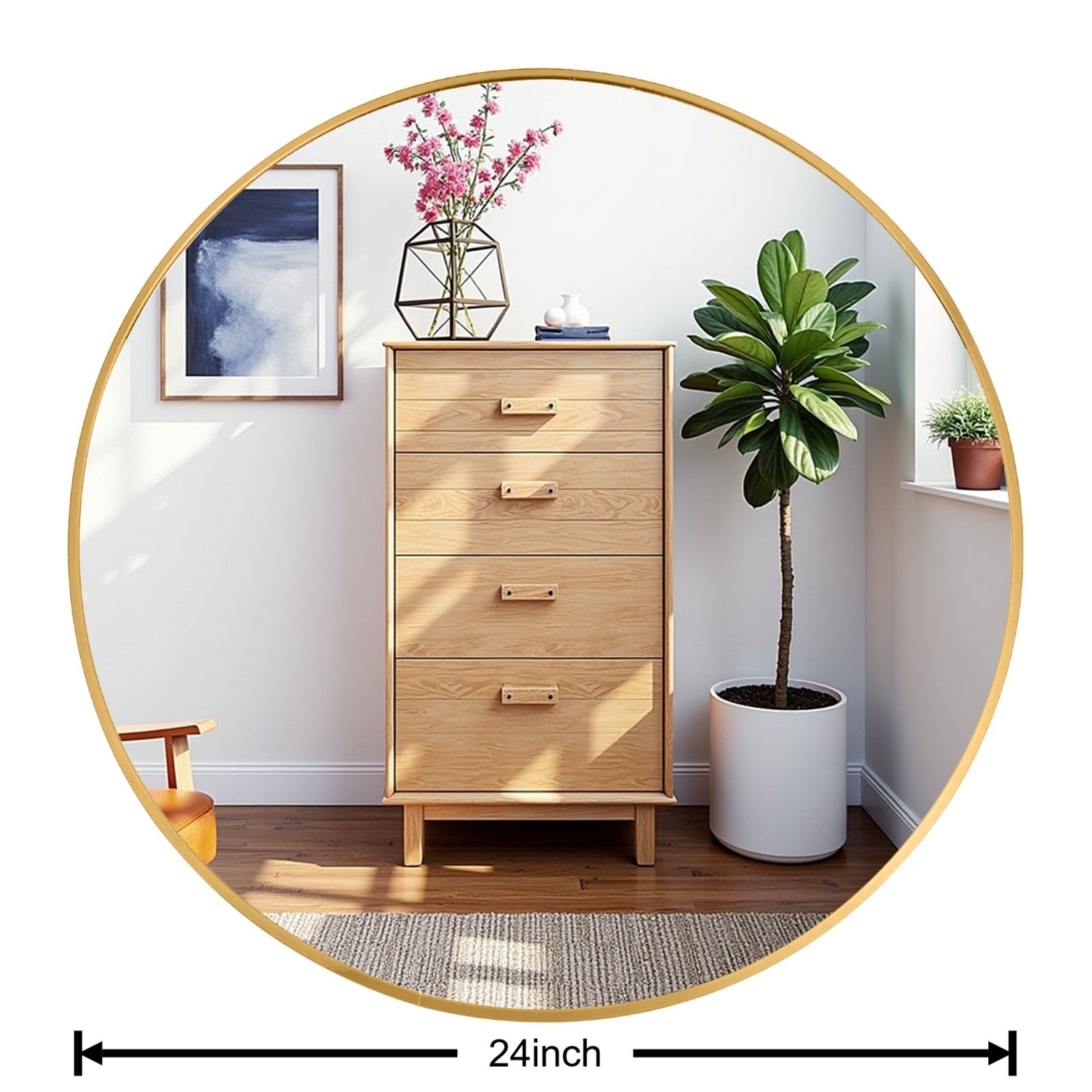 Round Mirror 24 inch, Circle Wall Mirror Metal Frame, Circle Bathroom Mirror, Circular Mirrors for Wall, Living Room, Bedroom, Vanity, Entryway